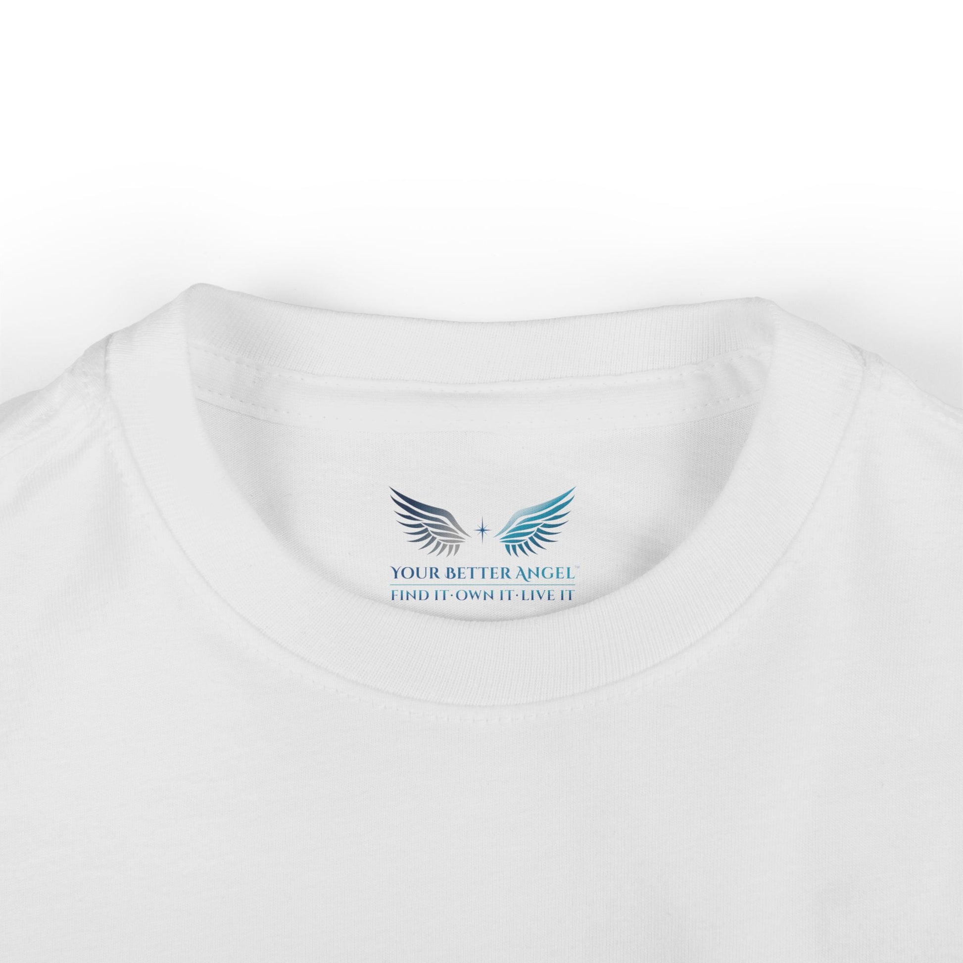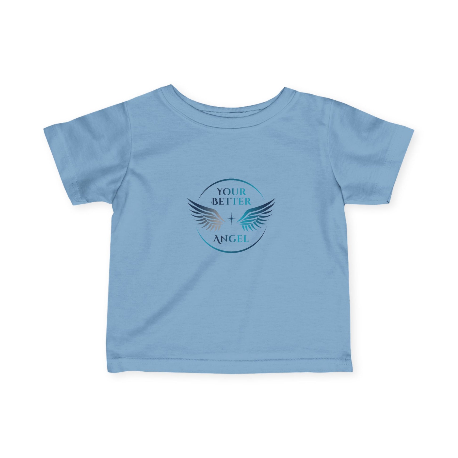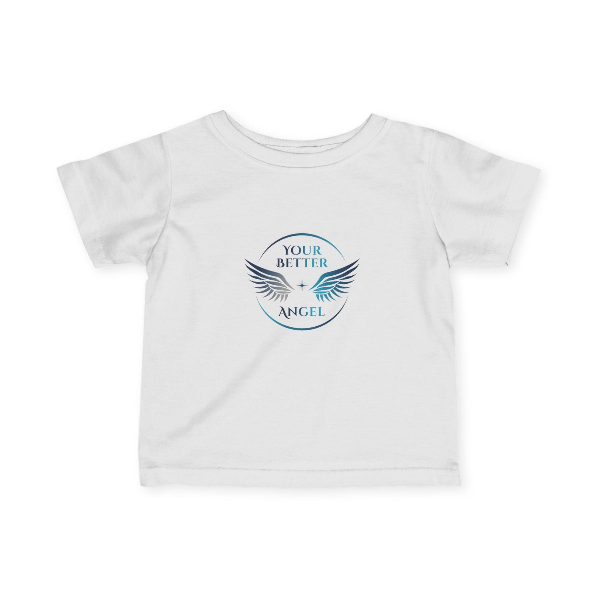 A sweet embrace for your "little angel!" This classic infant tee, crafted from 100% soft ring-spun cotton, is designed for ultimate comfort and gentle wear. The charming Your Better Angel circle logo sits proudly on the chest, a gentle reminder to nurture their budding spirit and inherent goodness. Perfect for everyday wear, fostering comfort and confidence.